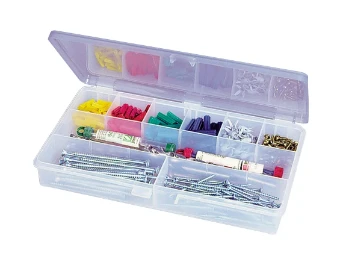 Een functionele en compacte vakkendoos met afgeronde hoeken en 9 vaste compartimenten.