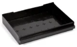 Halfhoog inzetbakje met 1 vak, geschikt voor het indelen van de laden. De ESD-serie is speciaal ontwikkeld voor het opbergen van materialen die onder spanning hebben gestaan. Alle metalen voorwerpen in deze serie zijn voorzien van een aardedraad waardoor al mogelijke elektriciteit direct weg wordt gevoerd en de kunststof onderdelen zijn een combinatie van kunststof en carbonvezels.