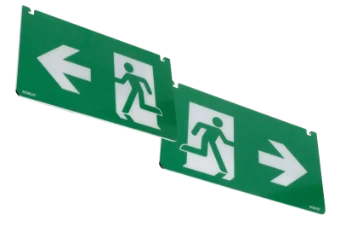 * Exit blade accessory for SWISS Exit Blade with running man and LEFT/RIGHT arrow * For EU Emergency Exit signage * Reversible bi-directional - can be used to point either left or right