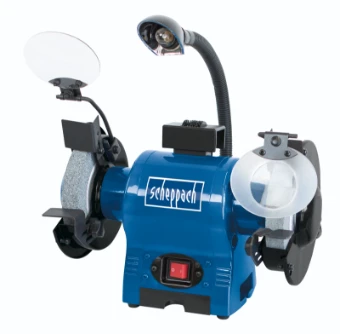 Scheppach bg150 dubbele tafelslijpmachine 6". geschikt voor zowel doe-het-zelvers als professionals. met deze sterke bank slijpmachine kunnen tools eenvoudig geslepen worden.bijzondere kenmerken•krachtige 0,5 hp inductiemotor voor een glad en accuraat resultaat•de oogbeschermkappen beschermen de ogen tegen opvliegend puin zonder het zicht te belemmeren•verstelbaar gereedschap verlengt de levensduur van het gereedschap•groot, flexibel werklicht met aparte schakelaar, zodat u zelf kunt gepalen wanneer u de lamp gebruikt•koelvloeistof tray zodat warme materialen gekoeld kunnen worden•een ruwe en een gladde 150 mm slijpschijf
