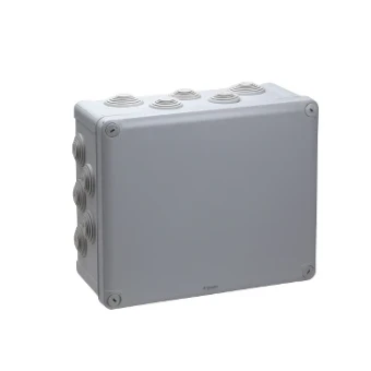 Deze rechthoekige opbouwdoos ENN05017 wordt geleverd met 16 x 32 mm, 4 x 40 mm dichtingen en kwartdraai schroefvaste afdekking Kleur grijs, afmetingen: breedte 295 mm, hoogte 125 mm, diepte 245 mm Inclusief schroefkraagkappen voor extra bescherming van de schroefkoppen Mechanische bescherming IK07, vlambestendigheid 750 °C Materiaal: afdekplaat PP (polypropyleen), dichting SBS (styreenbutadieenstyreen) Deze doos voor opbouwmontage is geclassificeerd als IP55 en biedt veilige installaties in ruwe omgevingen, zowel binnen als buiten, en wordt blootgesteld aan water en stof zoals industrie, boerderijen, parkeerfaciliteiten of zelfs een badkamer thuis. Soms heb je elektriciteit nodig waar het echt onmogelijk zou moeten zijn om die te installeren, zoals op natte of stoffige plaatsen, of waar elektriciteit helemaal niet gepland is U hoeft zich geen zorgen te maken! Aangezien de Mureva-dozen van Schneider Electric volledig voldoen aan alle mogelijke hoge veiligheidsvereisten van het bedrijf,