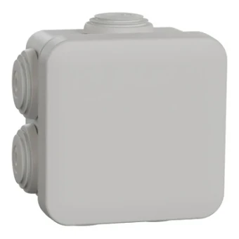 Deze vierkante opbouwdoos ENN05032 wordt geleverd met 7 x 20 mm dichtingen en vastgeklemde afdekking Kleur grijs, afmetingen: breedte 82 mm, hoogte 82 mm, diepte 52 mm Inclusief schroefkraagkappen voor extra bescherming van de schroefkoppen Mechanische bescherming IK07, vlambestendigheid 650 °C Materiaal: lichaam ABS (acrylonitril-butadieen-styreen), deksel PP (polypropyleen), dichting SBS (styreen-butadieen-styreen) Deze doos voor opbouwmontage is geclassificeerd als IP55 en biedt veilige installaties in ruwe omgevingen, zowel binnen als buiten, en wordt blootgesteld aan water en stof zoals industrie, boerderijen, parkeerfaciliteiten of zelfs een badkamer thuis. Soms heb je elektriciteit nodig waar het echt onmogelijk zou moeten zijn om die te installeren, zoals op natte of stoffige plaatsen, of waar elektriciteit helemaal niet gepland is U hoeft zich geen zorgen te maken! Aangezien de Mureva-dozen van Schneider Electric volledig voldoen aan alle mogelijke hoge veiligheidsvereisten va