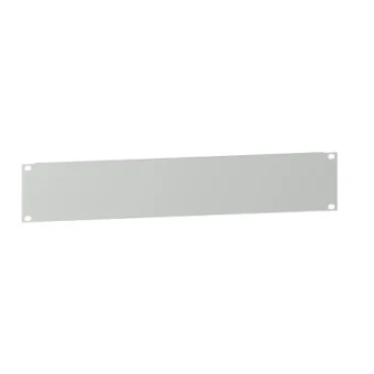 Voorpaneel bevestigd aan de 19-in. stijlen voor kabelbeheer. Deksel gemaakt van plaatstaal 15/10 mm dik, plaatstaal, RAL7035, lichtgrijs. 2U hoog paneel.