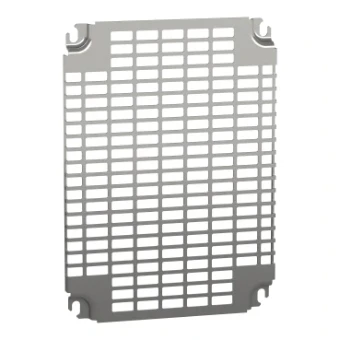 Monobloc geperforeerde montageplaten met universele perforaties voor Spatial CRN, S3D, S3X en Thalassa PLM. De afmetingen zijn (H) 400 mm x (B) 300 mm. De montageplaat kan worden bevestigd met behulp van een trapschuif of door directe bevestiging op noppen achteraan (M8-schroeven). Het is Telequick geperforeerd. De afmetingen van de inkeping zijn 11 mm x 26 mm. Het telt in totaal 198 slots. Het product is gemaakt van staal met een verzinkt oppervlak. Deze kan achteraan in de behuizing worden geïnstalleerd. Dit product wordt gekwalificeerd als een groene premie, met minimaal gebruik van gevaarlijke stoffen.