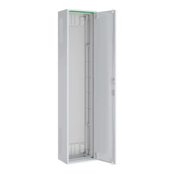 Deze PrismaSeT XL behuizing is een lege wandgemonteerde behuizing. Dit metalen omhulsel is ontworpen om 1 veld van 9 rijen van 12 modules van 18mm te installeren. Het kan alle types van modulaire schakeluitrustingen omvatten. Dit omhulsel is bestemd voor installatie binnen. De IP-beschermingsgraad is IP44. Het is voorzien van een volle deur. De kleur van de kast, de afdekplaat en de deur is wit (RAL 9016). Het kan zij aan zij of op elkaar worden geplaatst. Deze behuizing is bedoeld voor woningen en tertiaire sectoren. De kabels kunnen via de boven- of onderzijde van het omhulsel worden ingevoerd. De elektrische isolatieklasse is klasse II (dubbel geïsoleerd). De ingangsstroom is tot 400A. Dit product voldoet aan de norm IEC 61439, DIN VDE 0603, DIN EN 62208 De totale afmetingen zijn (B) 300mm x (H) 1400mm x (D) 210mm. De behuizing en de deur zijn gemaakt van gepoedercoat staal. De IK-beschermingsgraad is IK10.