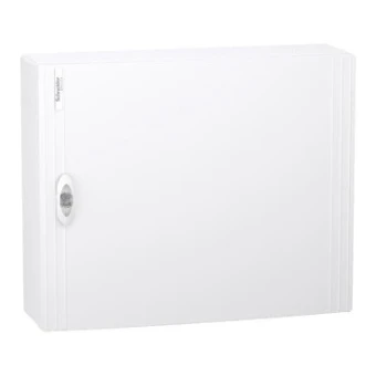 Deze Prismaset XS behuizing is een opbouwmontage distributiebehuizing. Deze metalen en kunststof behuizing is samengesteld uit 2 rijen van 24 modules van 18mm. Het kan alle types van modulaire schakeluitrustingen omvatten. Dit omhulsel is bestemd voor installatie binnen. De IP-beschermingsgraad is IP40 gesloten deur. Het is voorzien van een volle deur. De kleur van de kast, de afdekplaat en de deur is wit (RAL 9003). Dit gebruiksklare omhulsel is bedoeld voor gebruik in residentiële en tertiaire sectoren. Het is ontworpen voor elektriciens, en biedt ergonomie en flexibiliteit van de installatie. De kabels kunnen via de boven- of onderzijde van het omhulsel worden ingevoerd door verwijderbare kabelinvoerplaten. Het maakt invoer via kabel, buis of koker mogelijk. Het is uitgerust met 1 achterplaat en 2 DIN rails. De rails zijn verwijderbaar en vereenvoudigen de bedrading en de onderhoudswerkzaamheden. Het wordt geleverd met 1 aardingsklemmenblok. Dit klemmenblok biedt 24 uitgangen (3x25m