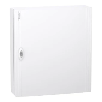 Deze Prismaset XS behuizing is een opbouwmontage distributiebehuizing. Deze metalen en kunststof behuizing is samengesteld uit 3 rijen van 24 modules van 18mm. Het kan alle types van modulaire schakeluitrustingen omvatten. Dit omhulsel is bestemd voor installatie binnen. De IP-beschermingsgraad is IP40 gesloten deur. Het is voorzien van een volle deur. De kleur van de kast, de afdekplaat en de deur is wit (RAL 9003). Dit gebruiksklare omhulsel is bedoeld voor gebruik in residentiële en tertiaire sectoren. Het is ontworpen voor elektriciens, en biedt ergonomie en flexibiliteit van de installatie. De kabels kunnen via de boven- of onderzijde van het omhulsel worden ingevoerd door verwijderbare kabelinvoerplaten. Het maakt invoer via kabel, buis of koker mogelijk. Het is uitgerust met 1 achterplaat en 3 DIN rails. De rails zijn verwijderbaar en vereenvoudigen de bedrading en de onderhoudswerkzaamheden. Het wordt geleverd met 1 aardingsklemmenblok. Dit klemmenblok biedt 24 uitgangen (3x25m