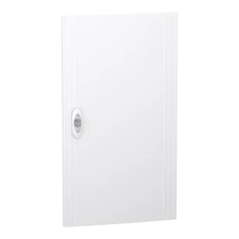 Dit Prismaset XS product is een volle deur voor de behuizing. Het is ontworpen om te voldoen aan een omhulsel met 3 rijen van 13 modules van 18mm. De IP-beschermingsgraad is IP40. De deur is gemaakt van technoplastic. De kleur is wit (RAL 9003). Het is bedoeld voor nieuwe of gerenoveerde installatie in residentiële en kleine gebouwen. De deur kan worden geïnstalleerd op een verzonken of oppervlaktebehuizing. het kan aan de rechter- of linkerzijde van het omhulsel worden gemonteerd en geopend. Het identificatienummer van de vergrendelingssleutel moet worden vermeld. De totale afmetingen zijn (B) 302mm x (H) 600mm x (D) 20mm. Het gewicht is 820g. De weerstand van het kunststof tegen vlammen en abnormale warmte is 650 °C. De IK-beschermingsgraad is IK09. De bedrijfstemperatuur is -25°C tot 60°C.
