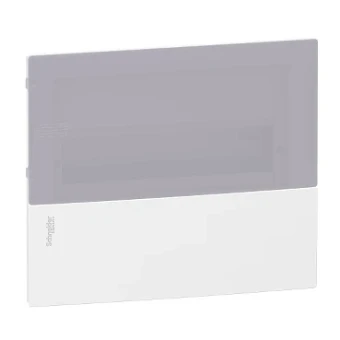 Deze Resi9 MP-behuizing is een verzonken gemonteerde modulaire behuizing. Deze kunststof behuizing bestaat uit 1 rij van 12 modules van 18 mm. Het kan alle soorten modulaire schakelapparatuur huisvesten. De IP beschermingsgraad is IP40. Het is voorzien van een doorschijnende deur. De kleur van de voorzijde is wit (RAL 9003). Het is bedoeld voor nieuwe of gerenoveerde installatie in woningen. Het is uitgerust met 35 mm asymmetrische rail. Het wordt geleverd met 1 aardingsaansluitblok met schroefaansluitklemmen. Dit aansluitblok is voorzien van 8 uitgangen (1x16mm² + 4x10mm² + 3x6mm²). De nominale ingangsstroom is tot 63 A. Het voldoet aan de IEC 60439-1- en 3-, IEC 60670-1- en IEC 24-normen. De totale afmetingen zijn (B) 294 mm x (H) 252 mm x (D) 98 mm. De behuizing is gemaakt van technisch materiaal (achterkant en voorzijde). De deur is gemaakt van technoplastic. De weerstand van het kunststof tegen vlammen en abnormale hitte is 650°C voor de deur, 750°C voor de voorkant en 850°C vo