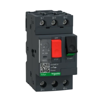 Deze TeSys GV motorbeveiligingsschakelaar is voorzien van 3 polen (3P), heeft een toegekende bedrijfsstroom van 32A/690V en is geschikt voor 3-fase motortoepassingen tot 15kW@400V. Deze vermogensschakelaar biedt een thermisch-magnetische bescherming met een thermisch instelbereik van 24 tot 32A en een hoog uitschakelvermogen van 10ka Icu bij 400V. Deze TeSys GV2 vermogensschakelaar kan worden aangesloten via schroefklemmen. De elektrische en mechanische duurzaamheid, net als de start-stop bediening via de drukknop zijn gegarandeerd voor 100.000 cycli. Dit product is multi-standaard gecertificeerd (IEC, UL, CSA, CCC, EAC, Marine, ATEX) en is voorzien van het Green Premium ecolabel (RoHS/REACh). De beschermingsgraad is IP20 conform IEC 60529.
