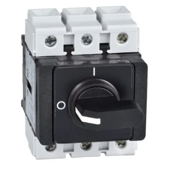 TeSys Vario lastscheider voor montage in behuizing of modulair paneel, 3 polen, 63A/690V, voor motorschakelaartoepassingen tot 22kW@400V AC-23. Volledige eenheid bestaande uit een schakelaarlichaam V3, een zwarte hendel met zwarte 45x45mm voorplaat KAE1BZ. Bedoeld voor gebruik bij het loskoppelen van de hoofdschakelaar. Handgreep niet vergrendelbaar. Multi-standaarden gecertificeerd (IEC, UL, CSA, CCC, EAC, Marine), Green Premium-conform (RoHS/REACh).