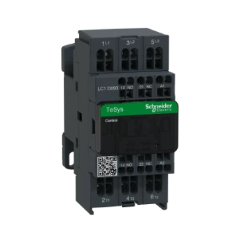 TeSys D - Contactor 3M (3V) - Voor motorbesturingstoepassingen tot 9A/690V AC-3/3E (4kW@400V). Voorzien van een 120V 50/60Hz AC-spoel, ingebouwde hulpcontacten 1NO+1NC (NC-spiegelgecertificeerd), aansluiting met veerklemmen. Voor werksnelheden tot 3600 cycli/uur en omgevingen tot 60 °C biedt het een hoge betrouwbaarheid en duurzaamheid voor veeleisende toepassingen. Compact (45 mm breed), DIN-rail montage of schroefbevestiging. Multi-standaarden gecertificeerd (IEC, UL, CSA, CCC, EAC, Marine), Green Premium-conform (RoHS/REACh).