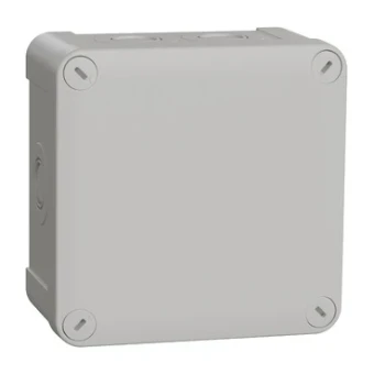 Deze vierkante opbouwdoos ENN05085 wordt geleverd met 7 metrische uitduwopeningen M16/20 en kwartdraai met schroefbevestiging Kleur grijs, afmetingen: breedte 115 mm, hoogte 115 mm, diepte 62 mm Inclusief schroefkraagkappen voor extra bescherming van de schroefkoppen Mechanische bescherming IK07, vlambestendigheid 750 °C Materiaal: lichaam en afdekking PP (polypropyleen) Deze doos voor opbouwmontage is geclassificeerd als IP55 en biedt veilige installaties in ruwe omgevingen, zowel binnen als buiten, en wordt blootgesteld aan water en stof zoals industrie, boerderijen, parkeerfaciliteiten of zelfs een badkamer thuis. Soms heb je elektriciteit nodig waar het echt onmogelijk zou moeten zijn om die te installeren, zoals op natte of stoffige plaatsen, of waar elektriciteit helemaal niet gepland is U hoeft zich geen zorgen te maken! Aangezien de Mureva-dozen van Schneider Electric volledig voldoen aan alle mogelijke hoge veiligheidsvereisten van het bedrijf, kunnen alle opbouwinstallaties g