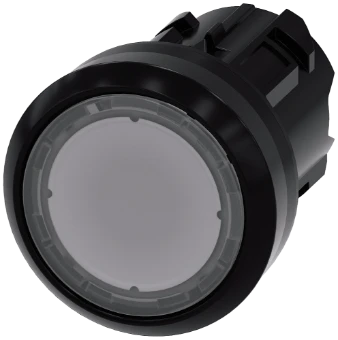 Indicator light in illuminated pushbutton design, 22 mm, round, plastic, clear, Indicator lights SIRIUS ACT for signaling switching states or faults in systems with high luminosity, thanks to energy-efficient LED technology. Under the brand name SIRIUS ACT, Siemens offers a unique portfolio of pushbuttons and signaling devices with global product approvals in three modern design lines of rugged genuine metal and high-grade plastic.An innovative snap-on concept makes the task of installing a unit so easy that it can be done with one hand and without any special tools. Groove-free holes are adequate as mounting holes since full twist prevention is already integrated.Thanks to the high degree of protection throughout, the rugged devices are suitable for use in industry and outdoors. Even cleaning with a high-pressure jet is possible. Neither dust, oils, nor caustic solutions can interfere with reliable operation.As well as standard wiring, the devices can also be connected to the controller via PROFINET, AS-Interface or IO-Link. Doing so will help you to reduce wiring time and effort, minimize error sources and have more flexibility.The graphical Online Configurator provides convenient support when selecting and ordering individual devices, enclosures and labels. Extensive documentation (e.g. manual, 3D data, terminal diagram) is available. Versions available: Several colors, different voltage variants. Note: Single device, please order holders and modules separately. SIRIUS ACT - Performance in action for control and signalling. Simply mounted, simply strong, simply perfect.