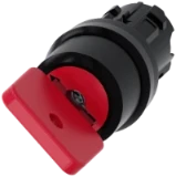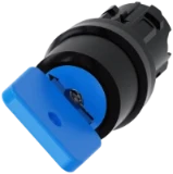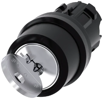 RONIS key-operated switch, 22 mm, round, plastic, lock number SB30, with 2 keys, 2 switch positions O-I, latching, actuating angle 90°, 10:30h/13:30h, key removal O, possible special locks: SB31, 421, 455 Key-operated switches SIRIUS ACT for meeting higher demands for access security. Under the brand name SIRIUS ACT, Siemens offers a unique portfolio of pushbuttons and signaling devices with global product approvals in three modern design lines of rugged genuine metal and high-grade plastic.An innovative snap-on concept makes the task of installing a unit so easy that it can be done with one hand and without any special tools. Groove-free holes are adequate as mounting holes since full twist prevention isalready integrated.Thanks to the high degree of protection throughout, the rugged devices are suitable for use in industry and outdoors. Even cleaning with a high-pressure jet is possible. Neither dust, oils, nor caustic solutions can interfere with reliable operation.As well as standard wiring, the devices can also be connected to the controller via PROFINET, AS-Interface or IO-Link. Doing so will help you to reduce wiring time and effort, minimize error sources and have more flexibility.The graphical Online Configurator provides convenient support when selecting and ordering individual devices, enclosures and labels. Extensive documentation (e.g. manual, 3D data, terminal diagram) is available. Versions available: Various locking systems (Siemens, C; Siemens, B; RONIS, OMR), 2/3 switch positions, latching/momentary-contact operation, various key removal positions. Note: Single device, please order holders and modules separately. SIRIUS ACT - Performance in action for control and signalling. Simply mounted, simply strong, simply perfect.