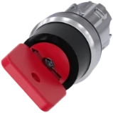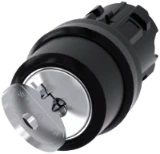 RONIS key-operated switch, 22 mm, round, metal, shiny, lock number SB30, with 2 keys, 2 switch positions O-I, latching, actuating angle 90°, 10:30h/13:30h, key removal O+I, possible special locks: SB31, 421, 455 Key-operated switches SIRIUS ACT for meeting higher demands for access security. Under the brand name SIRIUS ACT, Siemens offers a unique portfolio of pushbuttons and signaling devices with global product approvals in three modern design lines of rugged genuine metal and high-grade plastic.An innovative snap-on concept makes the task of installing a unit so easy that it can be done with one hand and without any special tools. Groove-free holes are adequate as mounting holes since full twist prevention isalready integrated.Thanks to the high degree of protection throughout, the rugged devices are suitable for use in industry and outdoors. Even cleaning with a high-pressure jet is possible. Neither dust, oils, nor caustic solutions can interfere with reliable operation.As well as standard wiring, the devices can also be connected to the controller via PROFINET, AS-Interface or IO-Link. Doing so will help you to reduce wiring time and effort, minimize error sources and have more flexibility.The graphical Online Configurator provides convenient support when selecting and ordering individual devices, enclosures and labels. Extensive documentation (e.g. manual, 3D data, terminal diagram) is available. Versions available: Various locking systems (Siemens, C; Siemens, B; RONIS, OMR), 2/3 switch positions, latching/momentary-contact operation, various key removal positions. Note: Single device, please order holders and modules separately. SIRIUS ACT - Performance in action for control and signalling. Simply mounted, simply strong, simply perfect.