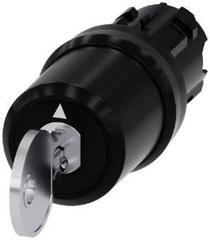 Siemens keyswitch, C, 22 mm, round, plastic, lock number S-10-CG, with 2 keys, 3 switch positions I-OII, left latching, momentary contact type on the right, actuating angle 2x45°, 10:30h/12h/13:30h, key removal O+I Key-operated switches SIRIUS ACT for meeting higher demands for access security. Under the brand name SIRIUS ACT, Siemens offers a unique portfolio of pushbuttons and signaling devices with global product approvals in three modern design lines of rugged genuine metal and high-grade plastic.An innovative snap-on concept makes the task of installing a unit so easy that it can be done with one hand and without any special tools. Groove-free holes are adequate as mounting holes since full twist prevention isalready integrated.Thanks to the high degree of protection throughout, the rugged devices are suitable for use in industry and outdoors. Even cleaning with a high-pressure jet is possible. Neither dust, oils, nor caustic solutions can interfere with reliable operation.As well as standard wiring, the devices can also be connected to the controller via PROFINET, AS-Interface or IO-Link. Doing so will help you to reduce wiring time and effort, minimize error sources and have more flexibility.The graphical Online Configurator provides convenient support when selecting and ordering individual devices, enclosures and labels. Extensive documentation (e.g. manual, 3D data, terminal diagram) is available. Versions available: Various locking systems (Siemens, C; Siemens, B; RONIS, OMR), 2/3 switch positions, latching/momentary-contact operation, various key removal positions. Note: Single device, please order holders and modules separately. SIRIUS ACT - Performance in action for control and signalling. Simply mounted, simply strong, simply perfect.