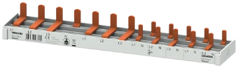 compact Pin Busbar, 10mm2 connection: 3p/N (RCCB N-right) 1x RCCB 4-pole+1x MCB 3-pole+ 5x compact device 1MW touch protected 12 MW cuttable Pin busbar SENTRON 5ST3 as additional components for residual current devices and miniature circuit breakers. These additional components can be mounted universally. They are easy and convenient to install and connect. Thanks to the standard touch protection, safety is reliably ensured during installation. Optimized technology for your safety - only from Siemens.