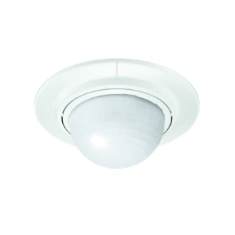 Intelligente inbouwtechniek. Infrarood-bewegingsmelder IS 360-1 DE, voor buiten en binnen, ideaal om in afdaken en verlaagde plafonds te bouwen, 360° registratiehoek, reikwijdte instelbaar tot 4 m, tijd- en inschakelniveau instelbaar, m.b.v. afdekplaatjes te verkleinen registratiegebied.