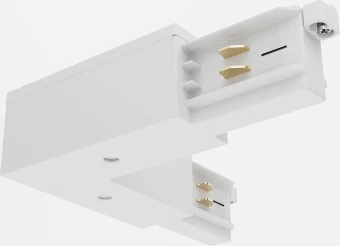 OneTrack 3-phase accessory, L-feed connector, polarity ridge is in the inner side. Polycarbonate body, copper alloy contacts. White. Please check the polarity diagram on selling sheet. Please check the safety sheet to supply the track with this accessory and follow the instructions correctly.