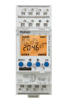 SELEKTA 172 top2 astronomische schakelklok, 2-Kan. DIN-rail, 24V, 2 TE