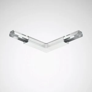 Verbindingsstuk voor L-vormige lichtlijntoepassingen. Aansluitstekker en bus meegeleverd (4/4). Apparatenbehuizing uit plaatstaal, afdekking uit PVC. Oppervlak zwart gecoat, kleur wit (vergelijkbaar met RAL 9016). Afmetingen (L x B): 362 mm x 362 mm. Met mogelijkheid tot voeding van bovenaf.