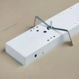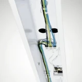 Led-inbouwarmatuur voor individuele of lichtlijntoepassingen. Voor inbouw in gezaagde plafondopening. Met afzonderlijk te bestellen inbouwtoebehoren ook geschikt voor gebruik in lamellenplafonds (SFlow ZBP L2). Voor lamellenplafonds met modulemaat 100. Realisatie van doorlopende lichtlijnen door de armatuurbehuizingen te verbinden door middel van een gereedschaploze montagetechniek. Optisch systeem met PMMA lenzentechniek. Afdekglas uit translucide PMMA voor een hoge verblindingsbeperking en efficiëntie. Met symmetrische beperkt brede lichtverdeling. Verblindingswaarde (EN 12464-1) overeenkomstig UGR < 19. Geschikt voor beeldschermwerkplek conform EN 12464-1 door beperkte luminanties L ≤ 1500 cd/m2 voor uitstralingshoek boven 65° rondom. De lichtstroom en lichtkleur van het armatuur liggen vast. Ledsysteem en armatuuroptiek als module gereedschapsloos in de armatuurbehuizing te vergrendelen. Bouwgroep met staaldraad beveiligd tegen neerstorten tijdens de montage. Armatuurlichtstroom 4000 lm, aansluitvermogen 27 W, maximale lichtrendement van de armatuur 148 lm/W. Lichtkleur neutraal wit, kleurtemperatuur (CCT) 4000 K, algemene kleurweergave-index (CRI) Ra > 80. Kleurplaatstolerantie (initial MacAdam) ≤ 3 SDCM. Gemiddelde opgegeven levensduur L80 (tq 25 °C) = 50.000 h. De lichtbron kan vervangen worden overeenkomstig de eisen inzake ecologisch ontwerp (EU-Verordening 2019/2020). Knipperen: Pst LM ≤ 1,0 bij volledige belasting. Stroboscoopeffect: SVM ≤ 0,4 bij volledige belasting. Armatuurbehuizing uit plaatstaal. Oppervlak wit gecoat (vergelijkbaar met RAL 9016). Afmetingen (L x B): 1413 mm x 100 mm, armatuurhoogte 45 mm. Beschermcategorie (EN 61140): I, beschermklasse (DIN EN 60529): IP20, slagvastheid overeenkomstig IEC 62262: IK03, testtemperatuur gloeidraadtest conform IEC 60695-2-11: 650 °C. Toelaatbare omgevingstemperatuur (ta): -20 °C naar 25 °C. Gewicht: 4,0 kg. Aansluiting op het stroomnet door middel van steekklemmen. Elektrische verbinding van de bouwgroepen geschiedt zelfstandig. De armatuur is geschikt voor gebruik op 230 V-gelijkspanningsvoeding (DC). Met elektronische transformator, schakelbaar. Het hulpapparaat kan vervangen worden overeenkomstig de eisen inzake ecologisch ontwerp (EU-Verordening 2019/2020). Met elektronische transformator, schakelbaar. De armatuur voldoet aan de fundamentele eisen van de van toepassing zijnde EU-richtlijnen en de productveiligheidswet. Ze is voorzien van een CE-markering. Bovendien heeft een onafhankelijk controlebureau het ENEC-certificaat toegekend aan de armatuur. Armatuur nog verkrijgbaar 10 jaar, reserveonderdelen (LED-module, hulpapparaat, optisch systeem) 15 jaar na factuurdatum, onder voorbehoud van verdedigbare wijzigingen ten behoeve van de vooruitgang.