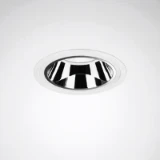 Compacte leddownlighter met rond model. Inbouwdownlighter met rand voor gezaagde plafondopeningen. Gereedschaploos in te bouwen in het plafond dankzij snelmontagespanners. Afmetingen plafondopening Ø 210 mm. Voor inbouw in plafondopeningen met andere afmetingen zijn afzonderlijk te bestellen renovatieplaten verkrijgbaar. Inbouwdiepte >= 127 mm, Armatuurhoogte 130 mm. Met hoogglanzend gemetalliseerde kunststof reflector. Kleur van het plafondmontageframe: zilverkleur. Symmetrische lichtverdelingskarakteristiek en uitstralingshoek: 80° Extreme Wide Flood. Lichtsturing door diffusor/reflector. Beperking van de directe verblinding overeenkomstig UGR 22. Met een ledmodule. Armatuurlichtstroom 3.800 lm, Aansluitvermogen 33,0 W, lichtrendement van de armatuur 115 lm/W. Lichtkleur Warmwit, kleurtemperatuur (CCT) 3000 K, algemene kleurweergave-index (CRI) Ra = 80. kleurplaatstolerantie (initial MacAdam) ≤ 3 SDCM stemt overeen met een hoge kleurovereenstemming van de LED's bij gebruik. Gemiddelde levensduur L90 (tq 25 °C) = 50.000 h, gemiddelde levensduur L80 (tq 25 °C) = 100.000 h. De lichtbron kan vervangen worden overeenkomstig de eisen inzake ecologisch ontwerp (EU-Verordening 2019/2020). Toelaatbare omgevingstemperatuur (ta): -20°C - +25°C. Behuizing en koellichaam uit spuitgietaluminium. Beschermcategorie (EN 61140): II, beschermklasse (DIN EN 60529): IP20. Beschermklasse aan de zijde van de ruimte: IP54. Slagvastheid overeenkomstig IEC 62262: IK06, testtemperatuur gloeidraadtest conform IEC 60695-2-11: 850 °C. Met 5-polige aansluitklem voor bedrading tot 2,5 mm² voor netaansluiting en afzonderlijke 5-polige doorlusbox. Het voorschakelapparaat wordt verbonden met het net via een aansluitklem. Met elektronisch voorschakelapparaat, digitaal dimbaar (DALI). Hulpapparaat volgens DALI-2-standaard (EN 62386). Armatuur schakel- en dimbaar door toetsfunctie via DALI-stuurklemmen (Touch DIM). Mogelijk dimbereik: 1...100%. Het hulpapparaat kan vervangen worden overeenkomstig de eisen inzake ecologisch ontwerp (EU-Verordening 2019/2020). Live-Link ready. De armatuur is siliconenvrij. Het product voldoet aan de fundamentele eisen van de geldende EU-richtlijnen en de productveiligheidswet en draagt de CE-markering. Bovendien heeft een onafhankelijk controlebureau het ENEC-certificaat toegekend aan de armatuur. Voor beeldschermwerkplekken. Kantoren, Gangen, Foyers, Vergaderruimtes, Kantoorruimtes, Wachtzones. Met Trilux beschikbaarheid belofte: De armatuur is nog 10 jaar na factuurdatum verkrijgbaar, reserveonderdelen (LED-module, hulpapparaat en optisch systeem) nog 15 jaar. Onder voorbehoud van verdedigbare wijzigingen ten behoeve van de vooruitgang.
