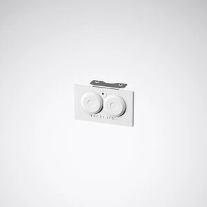 Eindafdekking uit aluminium met voedingsaansluiting. Breedte 67,4 mm, hoogte 45,9 mm. Kleur wit (vergelijkbaar met RAL 9016).