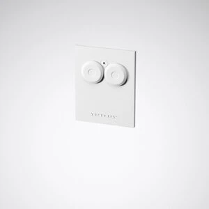 Eindafdekking uit aluminium met voedingsaansluiting. Breedte 67,4 mm, hoogte 85,9 mm. Kleur wit (vergelijkbaar met RAL 9016).