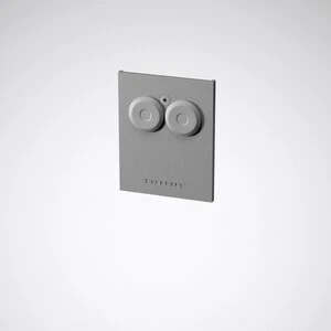 Eindafdekking uit aluminium met voedingsaansluiting. Breedte 67,4 mm, hoogte 85,9 mm. Kleur: zilvergrijs (vergelijkbaar met RAL 9006).