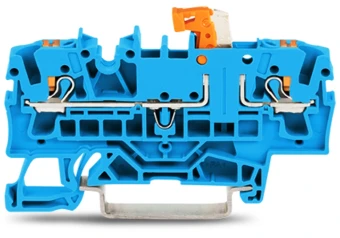 2-draads scheidings- en meetklem Met drukknop met testmogelijkheid Houder voor scheidingsmes, oranje voor draagrail 35 x 15 en 35 x 7,5 2,5 mm²